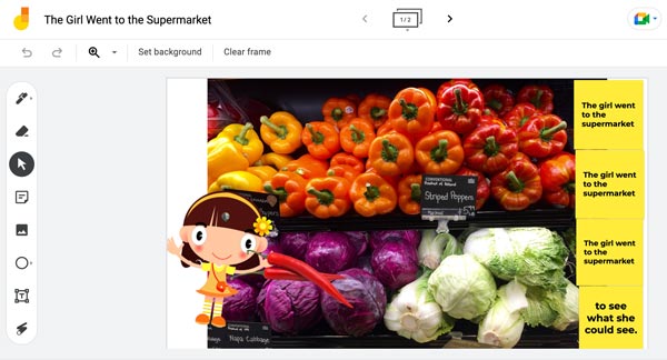 from Google is a tool that was created “just in time” (in tech-talk) for the pandemic. Of course, these events thrust us into new ways of working with our students from a distance. Jamboard’s simple whiteboard features simplified remote, tech-based clinical interactions, such as solidifying ideas with pictures and making thinking visible with sticky notes. Jamboard was released in 2017 as a business-brainstorming tool and had started to make its way into educational circles more widely when the unthinkable happened: schools and clinical settings needed to shut down. Throughout the pandemic, it was an invaluable tool, one which I wrote about here in conjunction with the use of MindWing’s Digital Icons. But like some emergency practices, it has continued to be extremely useful. See the linked post above for some nitty-gritty how-tos on using Jamboard. In this post we are going to focus on a specific application of creating parallel stories. The practice of using picture books in speech-language and literacy interventions is well established, as it can provide a context for teaching narrative structure (with Story Grammar Marker® of course) and microstructure such as syntax and vocabulary targets...